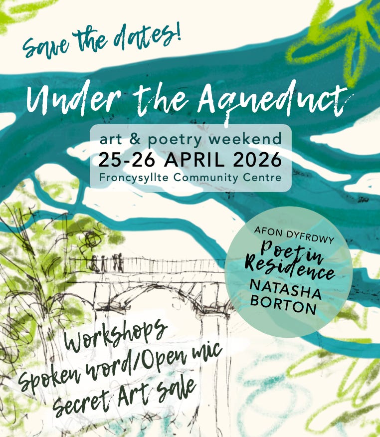 If you are local to North Wales, save the dates of 25-26 April for Under the Aqueduct, and arts and poetry weekend organised by ETA (Empathy Through Art CIC). This event is part of the Afonydd series and linked to a poetry book about Welsh rivers which came out last year. Co-organising this event with collaborator friends Suzanne Iuppa, Emma-Jayne Holmes and Natasha Borton is another opportunity to open into Spring. There will be a rivers themed poetry event 1-4pm at Froncysyllte Community Centre on Sunday 26th, in aid of the Welsh Dee Trust. join us!